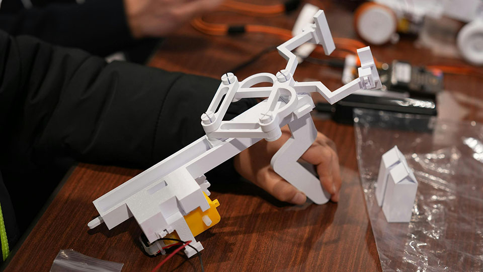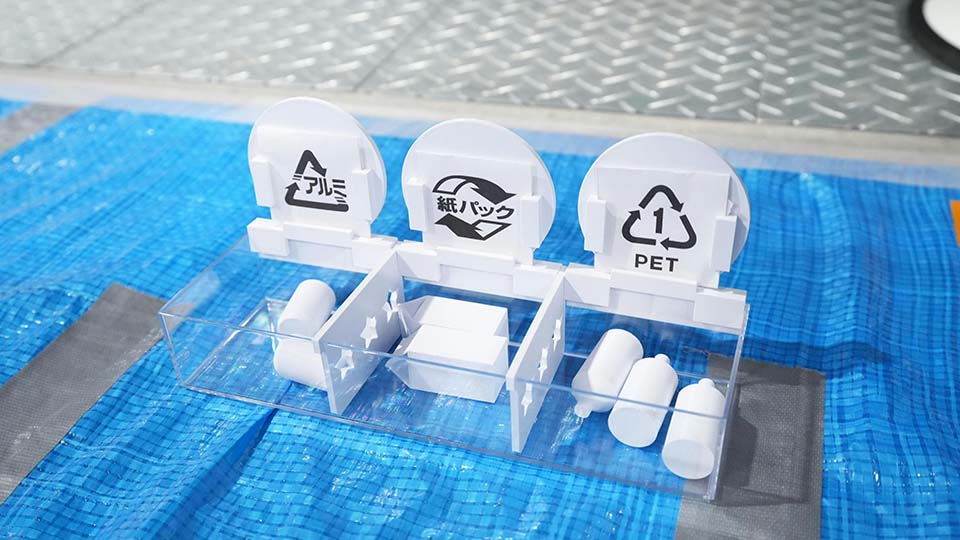 高校生に教わりながらハンド部分を組み立て、友達と協力して『ハンセン』を操縦し、回収したゴミをリサイクルマークに合わせて分別する、というワークショップを行いました。